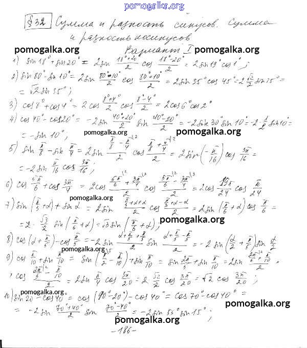 Готовые ответы - Алгебра и начала математического анализа 10 класс Дидактические материалы Шабунин М.И. (к уч. Алимова) - §32 глава 5 вариант 1
