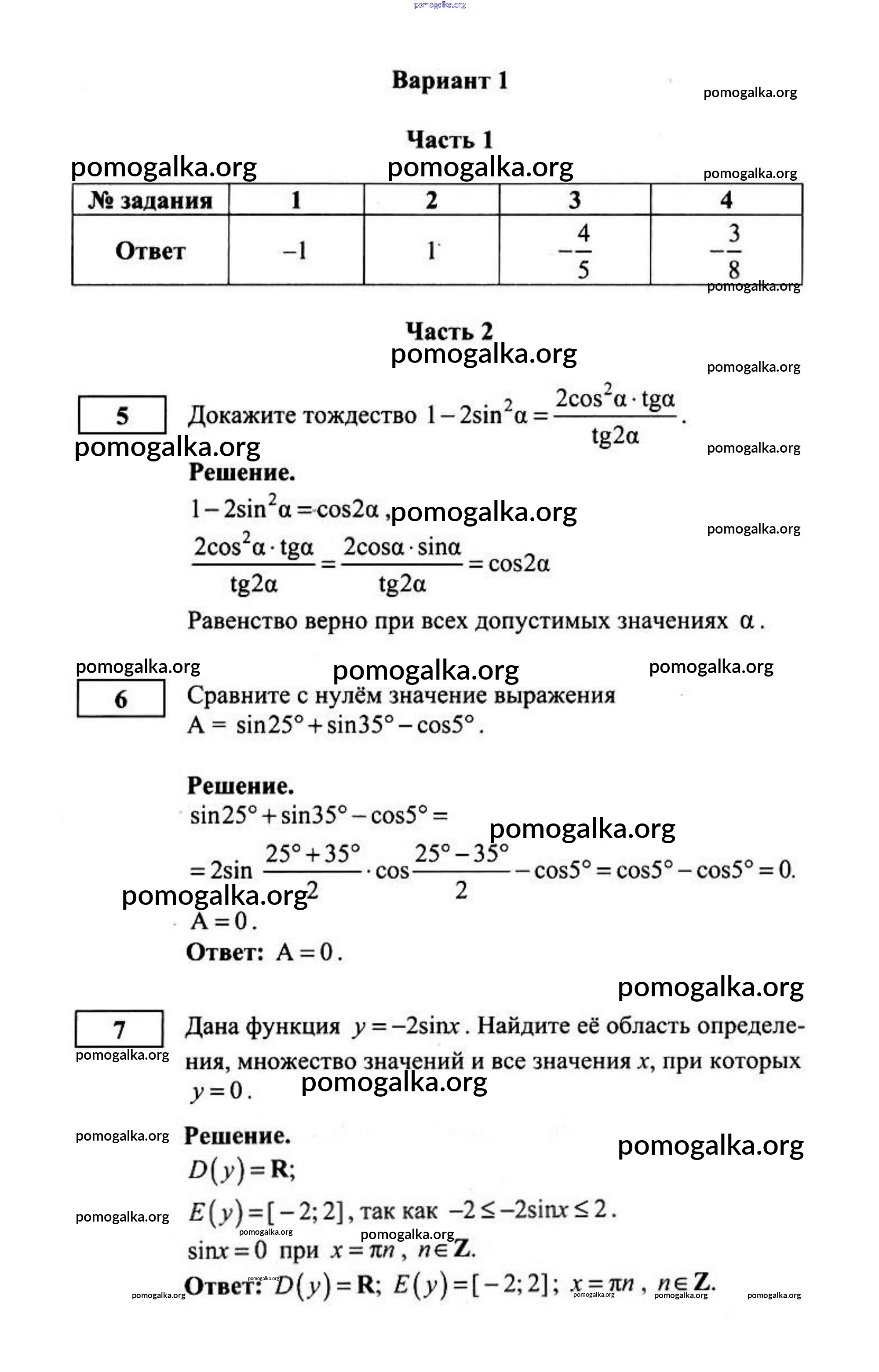 Готовые ответы - Алгебра 10 класс контрольные работы Дудницын (В новом формате) - контрольная работа 2 1