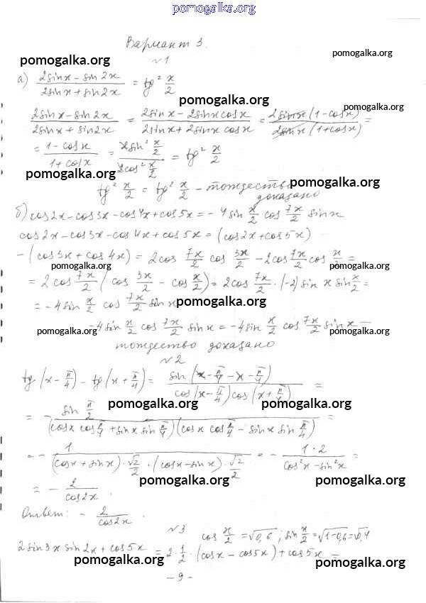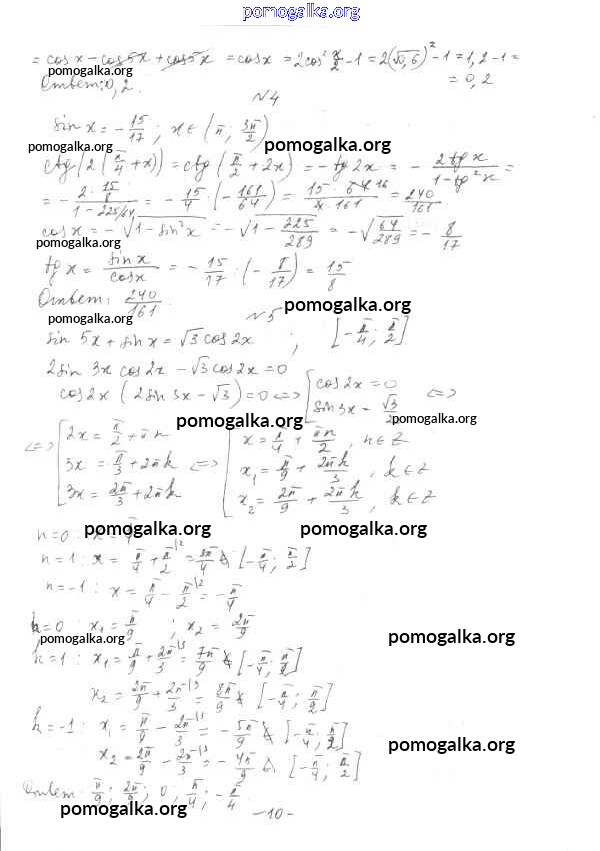 Готовые ответы - Алгебра и начала математического анализа 10 класс Контрольные работы Глизбург В.И. - кр-5 контрольные работы вариант 3