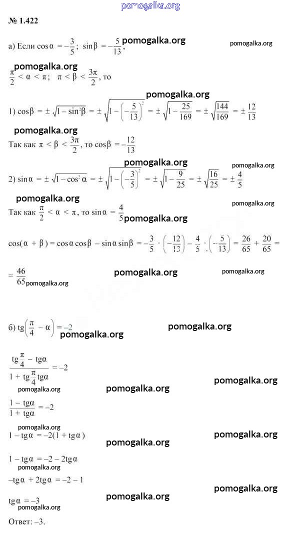 Готовые ответы - Алгебра 10 класс Арефьева И. Г. - глава 1 1.422