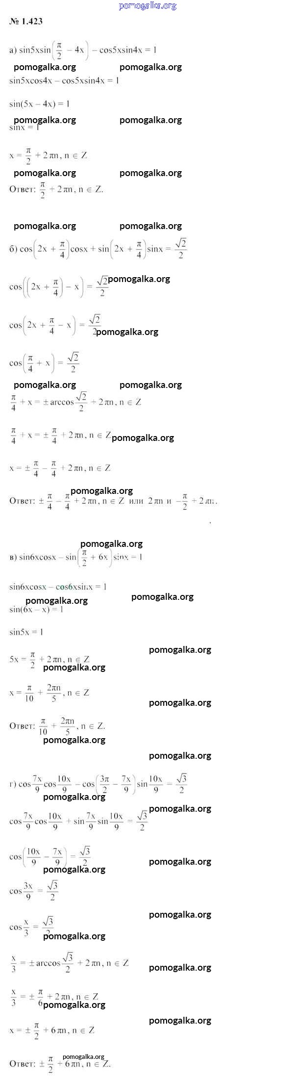 Готовые ответы - Алгебра 10 класс Арефьева И. Г. - глава 1 1.423