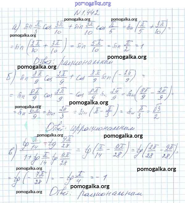 Готовые ответы - Алгебра 10 класс Арефьева И. Г. - глава 1 1.442