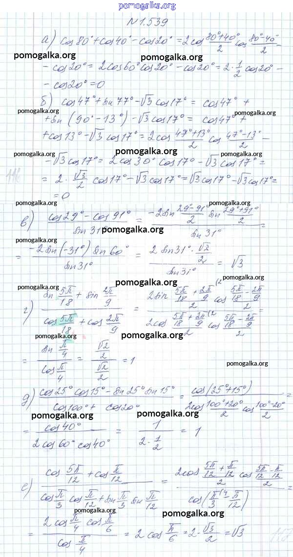 Готовые ответы - Алгебра 10 класс Арефьева И. Г. - глава 1 1.539