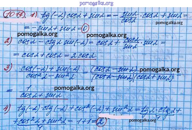 Готовые ответы - Алгебра и начала математического анализа 10 класс Базовый и углубленный уровни Колягин Ю.М. - упражнение № 1017