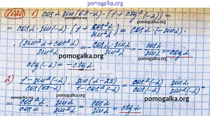 Готовые ответы - Алгебра и начала математического анализа 10 класс Базовый и углубленный уровни Колягин Ю.М. - упражнение № 1020