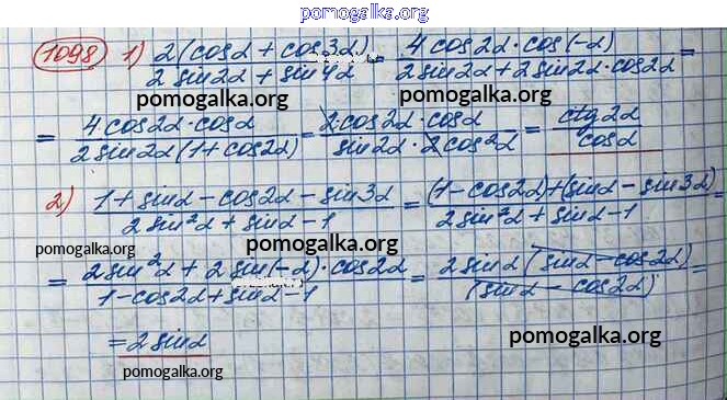 Готовые ответы - Алгебра и начала математического анализа 10 класс Базовый и углубленный уровни Колягин Ю.М. - упражнение № 1098