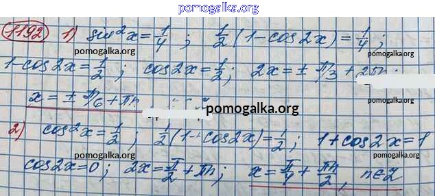 Готовые ответы - Алгебра и начала математического анализа 10 класс Базовый и углубленный уровни Колягин Ю.М. - упражнение № 1192