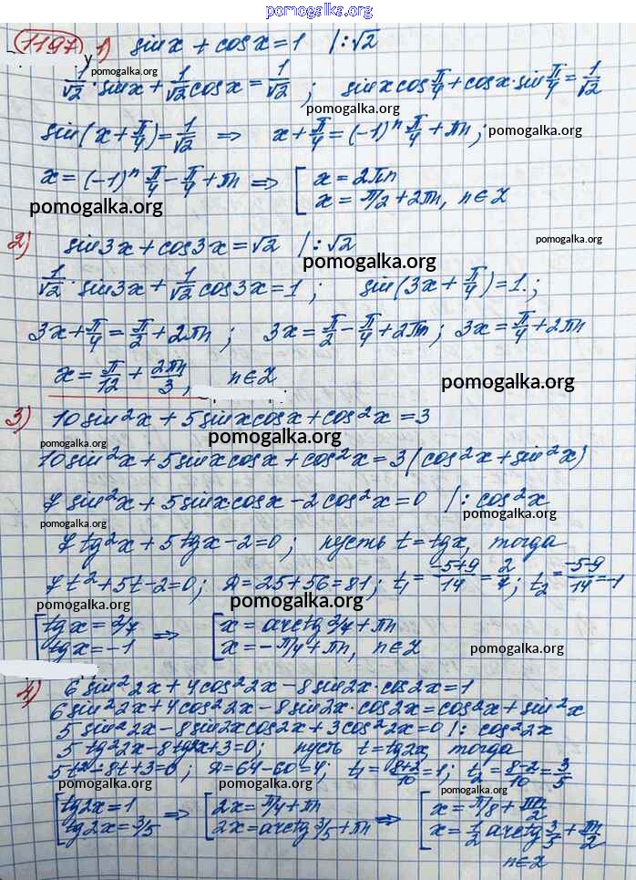 Готовые ответы - Алгебра и начала математического анализа 10 класс Базовый и углубленный уровни Колягин Ю.М. - упражнение № 1197