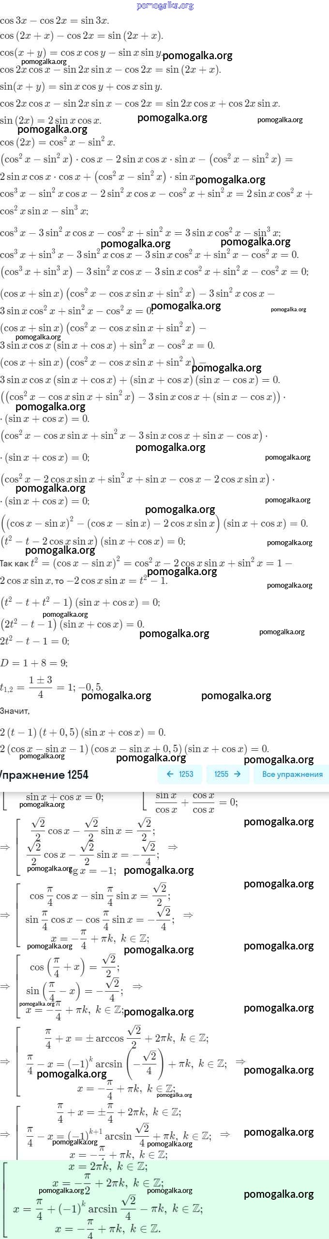 Готовые ответы - Алгебра и начала математического анализа 10 класс Базовый и углубленный уровни Колягин Ю.М. - упражнение № 1254