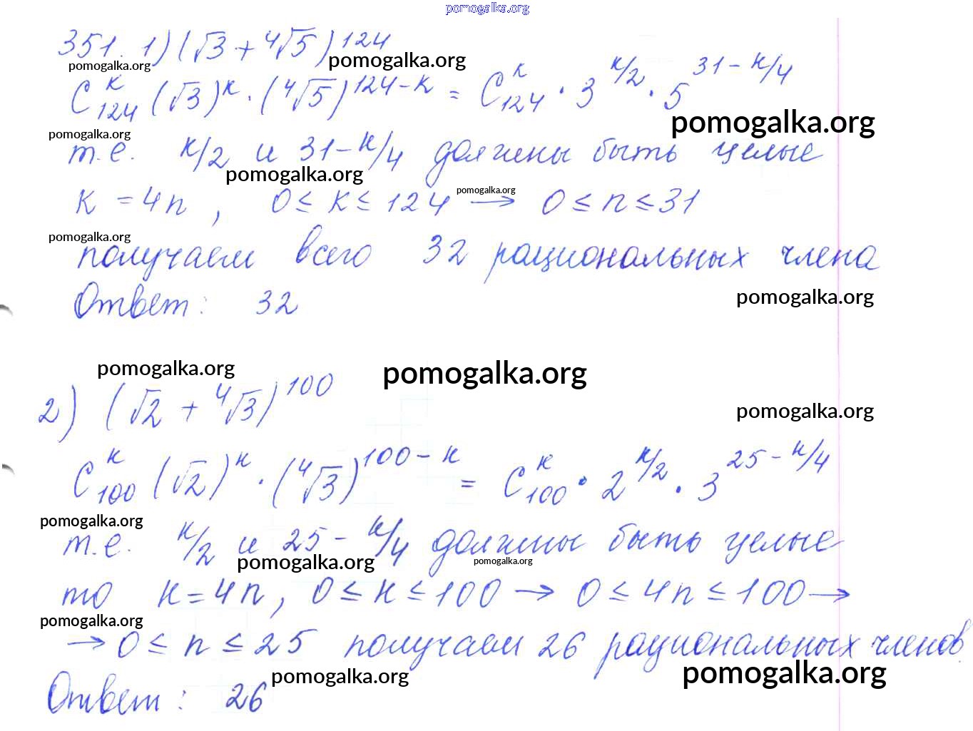 Готовые ответы - Алгебра и начала математического анализа 10 класс Базовый и углубленный уровни Колягин Ю.М. - упражнение № 351