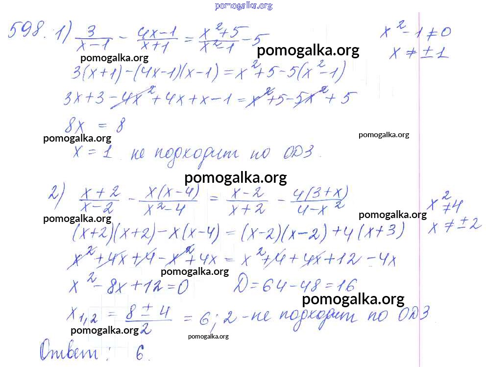 Готовые ответы - Алгебра и начала математического анализа 10 класс Базовый и углубленный уровни Колягин Ю.М. - упражнение № 598