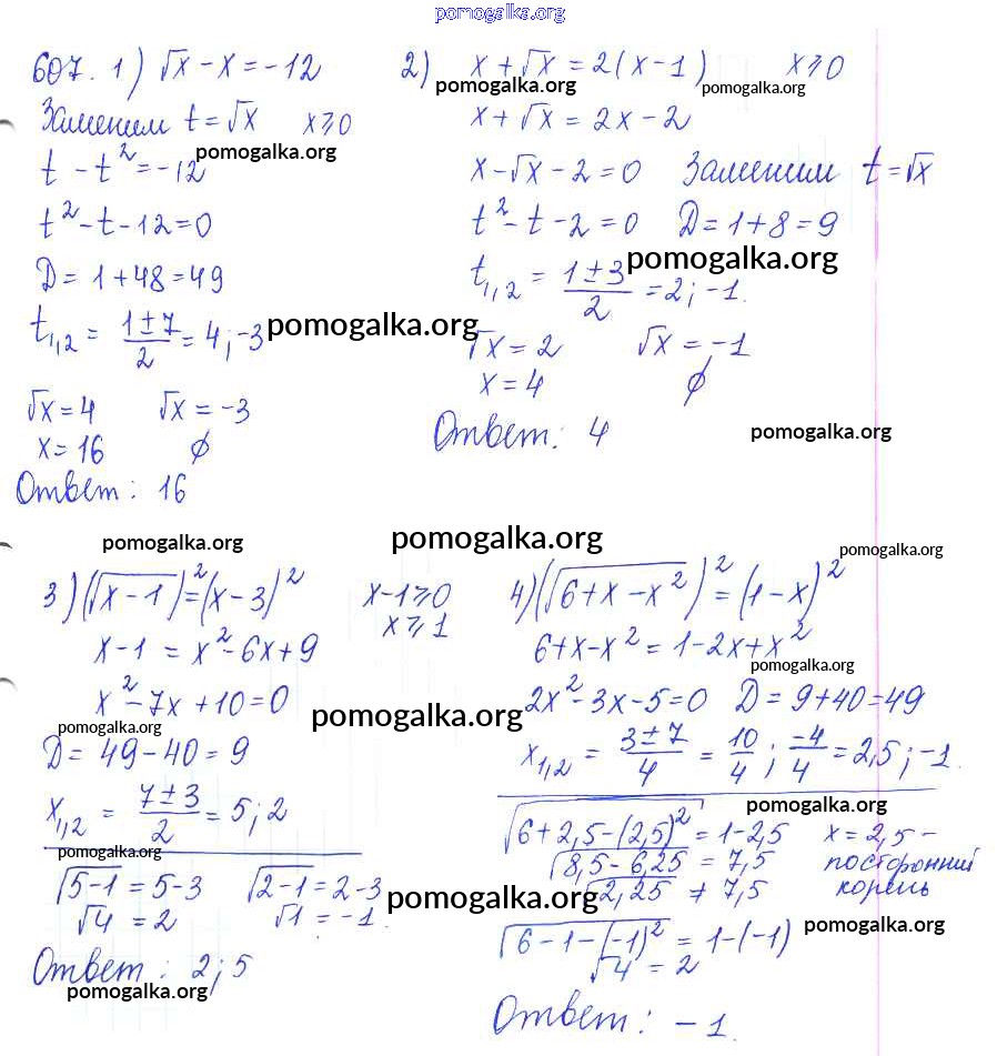 Готовые ответы - Алгебра и начала математического анализа 10 класс Базовый и углубленный уровни Колягин Ю.М. - упражнение № 607