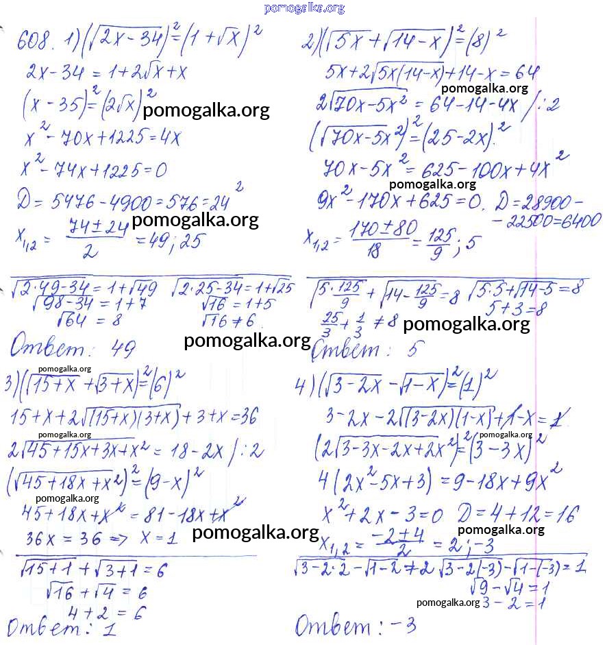 Готовые ответы - Алгебра и начала математического анализа 10 класс Базовый и углубленный уровни Колягин Ю.М. - упражнение № 608