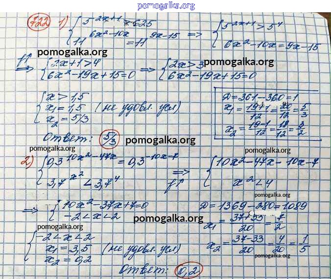 Готовые ответы - Алгебра и начала математического анализа 10 класс Базовый и углубленный уровни Колягин Ю.М. - упражнение № 722