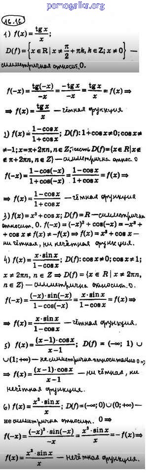 Готовые ответы - Математика: алгебра и начала математического анализа 10 класс Мерзляк А.Г. - §16 16.16
