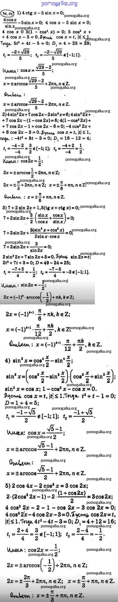 §30. Тригонометрические уравнения, сводящиеся к алгебраическим №1-22