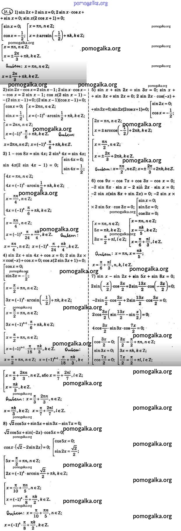 §31. Решение тригонометрических уравнений методом разложения на множители №1-8