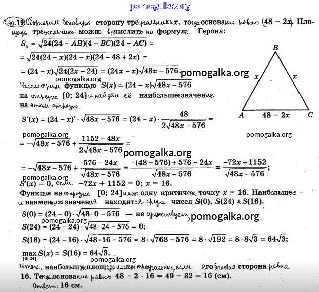 §40. Применение производной при нахождении наибольшего и наименьшего значений функции №1-21