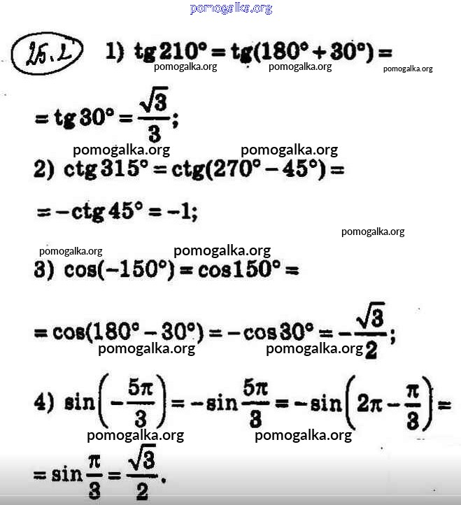§18. Тригонометрические функции числового аргумента №1-18