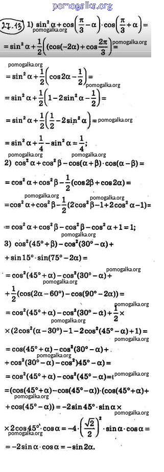 §27. Формулы для преобразования суммы, разности и произведения тригонометрических функций №1-20