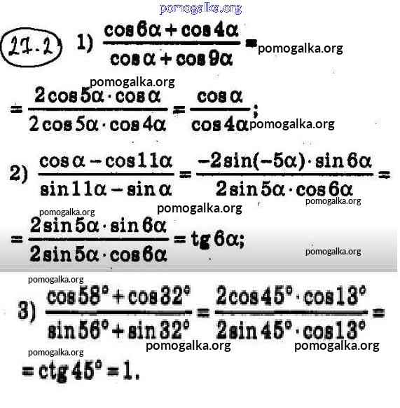 §27. Формулы для преобразования суммы, разности и произведения тригонометрических функций №1-20