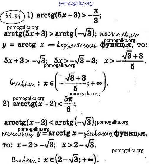 §31. Функции у = arccosx, y = arcsinx, у = arctgx и у = arcctgx №1-41