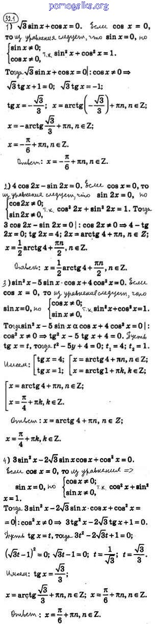 §32. Тригонометрические уравнения, сводящиеся к алгебраическим №1-34