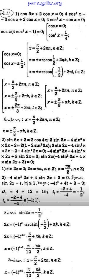 §32. Тригонометрические уравнения, сводящиеся к алгебраическим №1-34