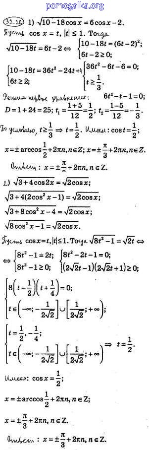 Готовые ответы - Математика: алгебра и начала математического анализа 10 класс Мерзляк А.Г. - §32 32.26