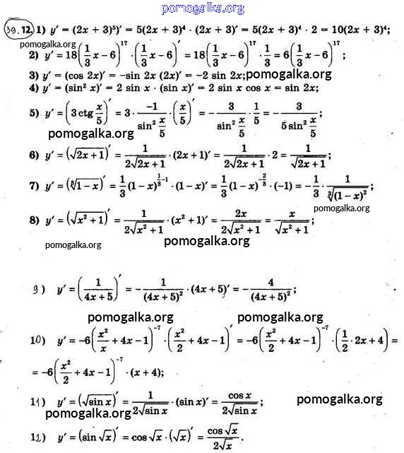 Готовые ответы - Математика: алгебра и начала математического анализа 10 класс Мерзляк А.Г. - §39 39.12