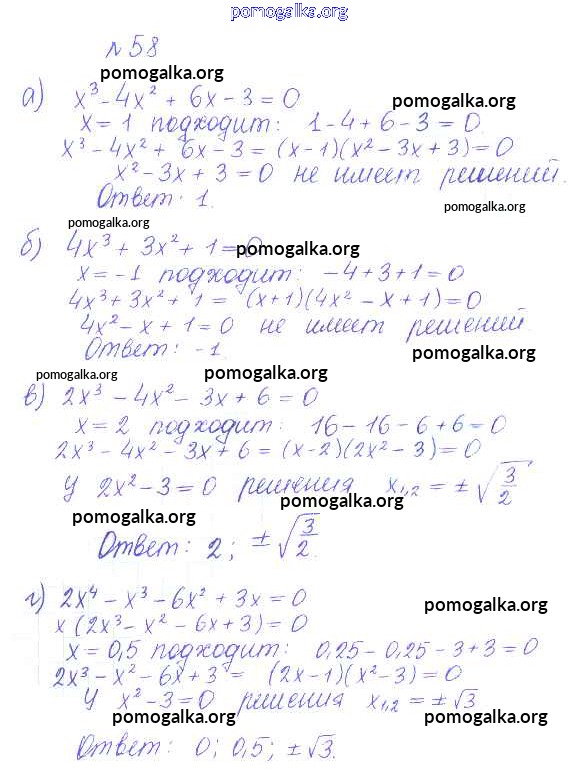 Готовые ответы - Алгебра и начала математического анализа 10 класс Базовый и углубленный уровни Никольский С.М. - повторение 58
