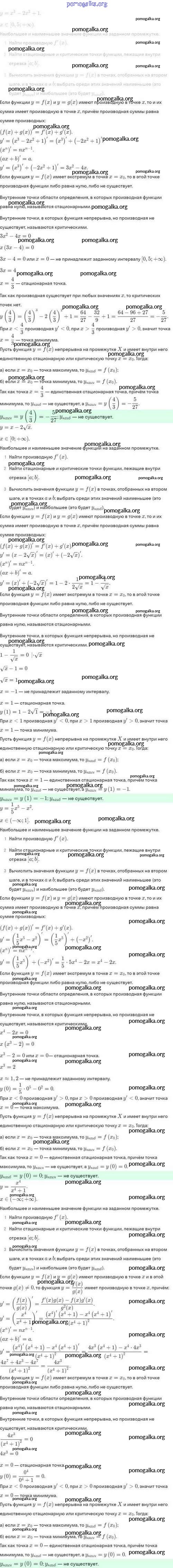 §46. Нахождение наибольших и наименьших значений функции. №1-67