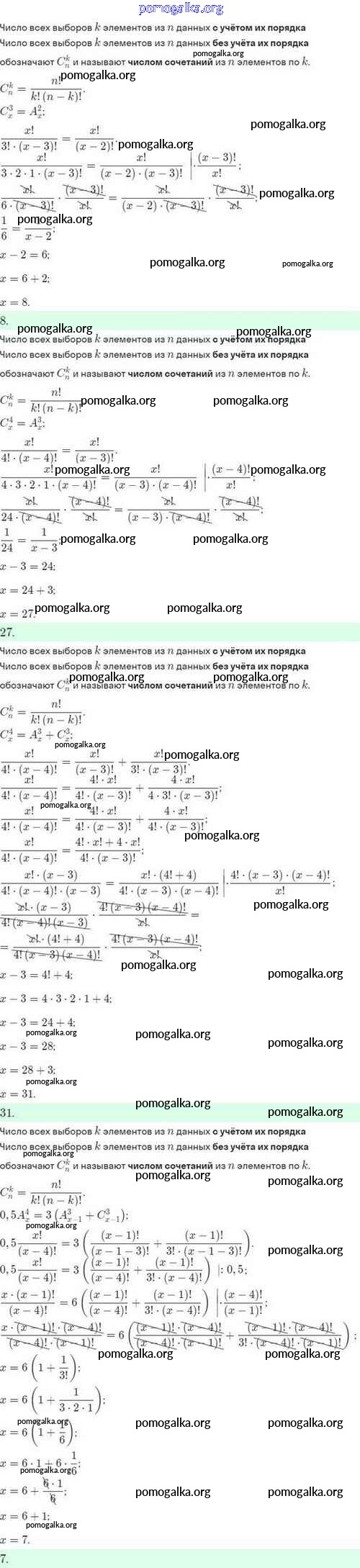 §48. Выбор нескольких элементов. Биноминальные коэффициенты. №1-30