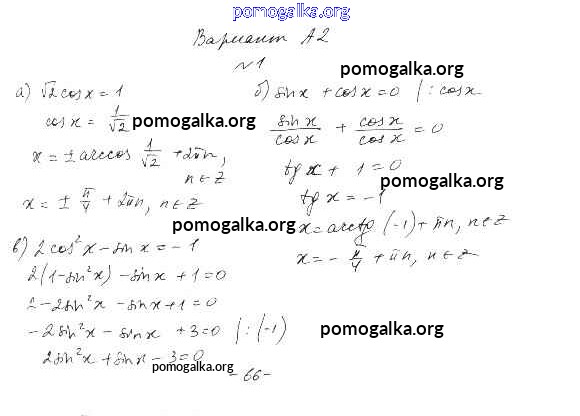 Готовые ответы - Алгебра 10-11 класс самостоятельные и контрольные работы Ершова А.П. - кр-3. вариант контрольная работа А2