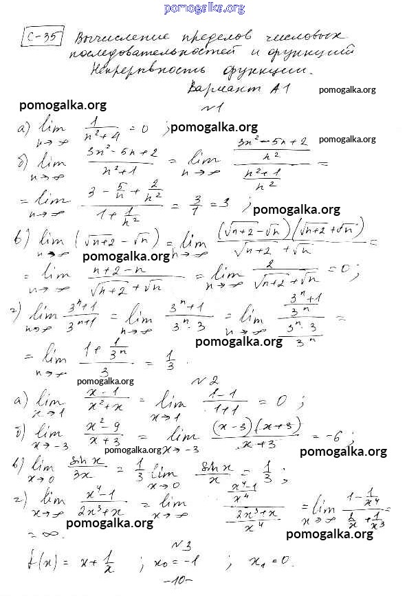 Готовые ответы - Алгебра 10-11 класс самостоятельные и контрольные работы Ершова А.П. - ср-35. вариант самостоятельная работа А1