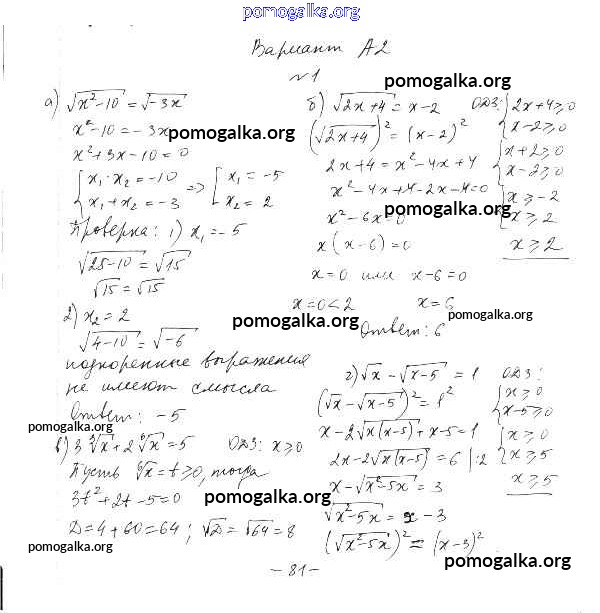 Готовые ответы - Алгебра 10-11 класс самостоятельные и контрольные работы Ершова А.П. - ср-21. вариант самостоятельная работа А2