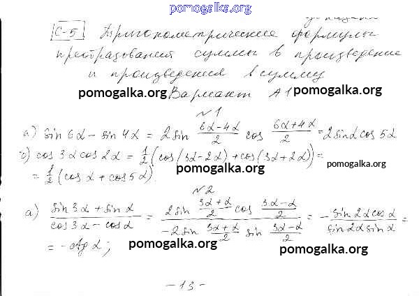 Готовые ответы - Алгебра 10-11 класс самостоятельные и контрольные работы Ершова А.П. - ср-5. вариант самостоятельная работа А1