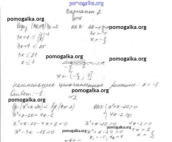 Готовые ответы - Алгебра 11 класс самостоятельные работы Базовый уровень Александрова Л.А. - самостоятельная работа 23 (вариант) 2