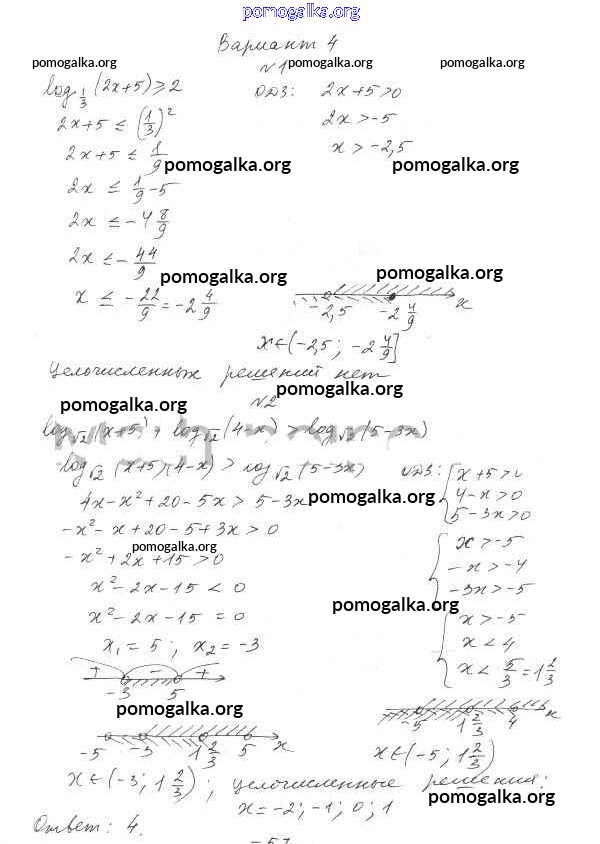 Готовые ответы - Алгебра 11 класс самостоятельные работы Базовый уровень Александрова Л.А. - самостоятельная работа 23 (вариант) 4