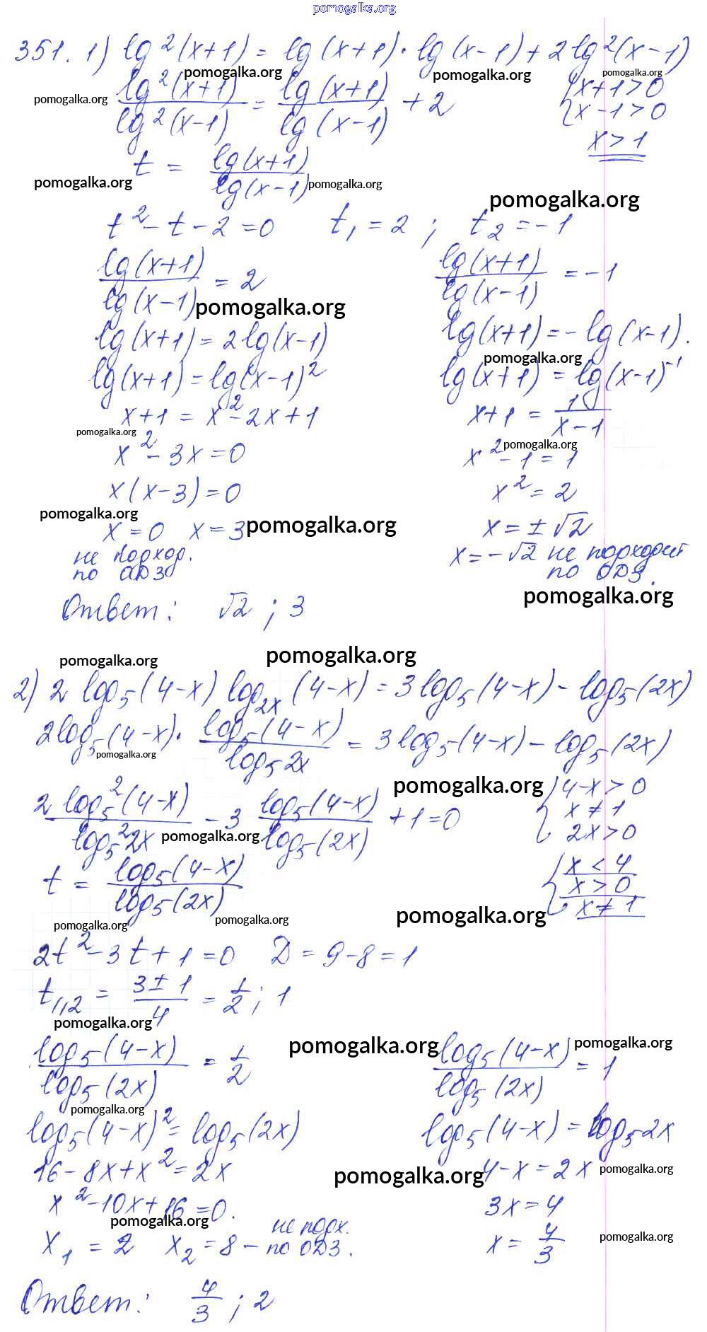 Готовые ответы - Алгебра и начала математического анализа 10-11 класс Базовый и углубленный уровни Алимов Ш.А. - упражнение № 351