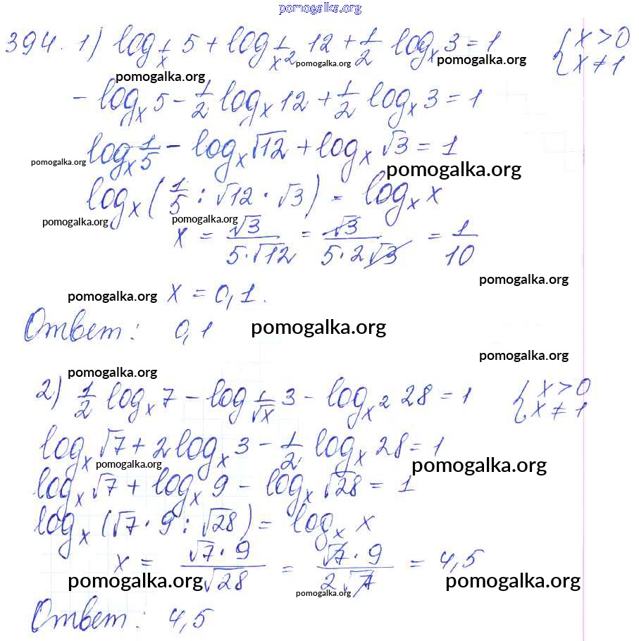 Готовые ответы - Алгебра и начала математического анализа 10-11 класс Базовый и углубленный уровни Алимов Ш.А. - упражнение № 394