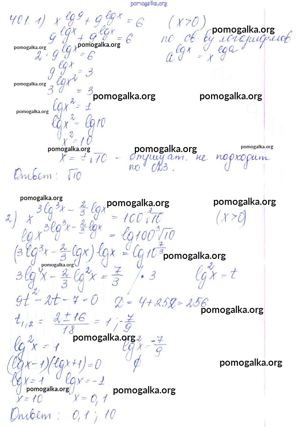 Готовые ответы - Алгебра и начала математического анализа 10-11 класс Базовый и углубленный уровни Алимов Ш.А. - упражнение № 401