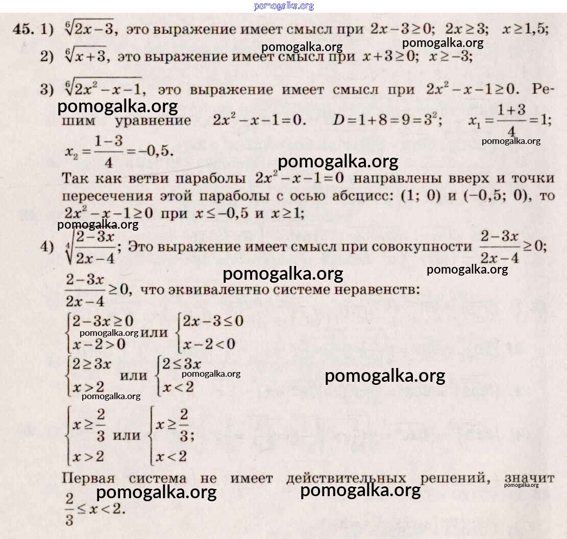 Готовые ответы - Алгебра и начала математического анализа 10-11 класс Базовый и углубленный уровни Алимов Ш.А. - упражнение № 45
