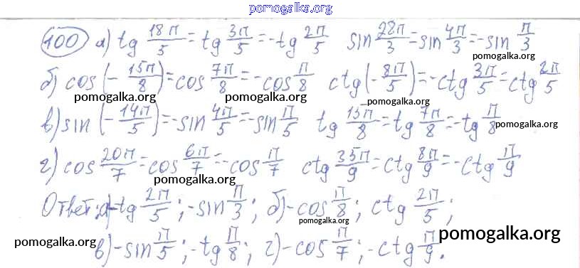 Готовые ответы - Алгебра и начала математического анализа 10-11 класс Колмогоров А.Н. - упражнение 100