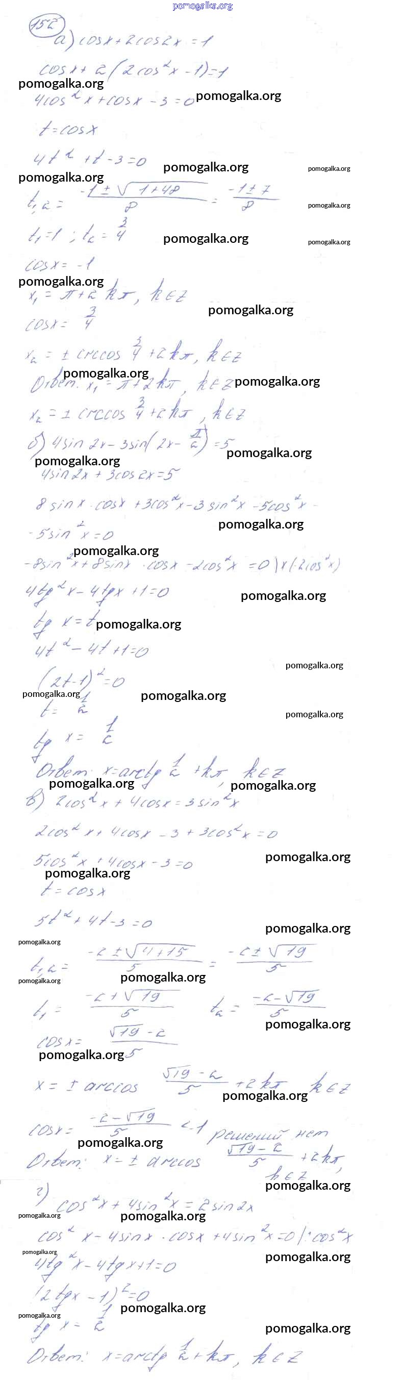 Готовые ответы - Алгебра и начала математического анализа 10-11 класс Колмогоров А.Н. - повторение 152