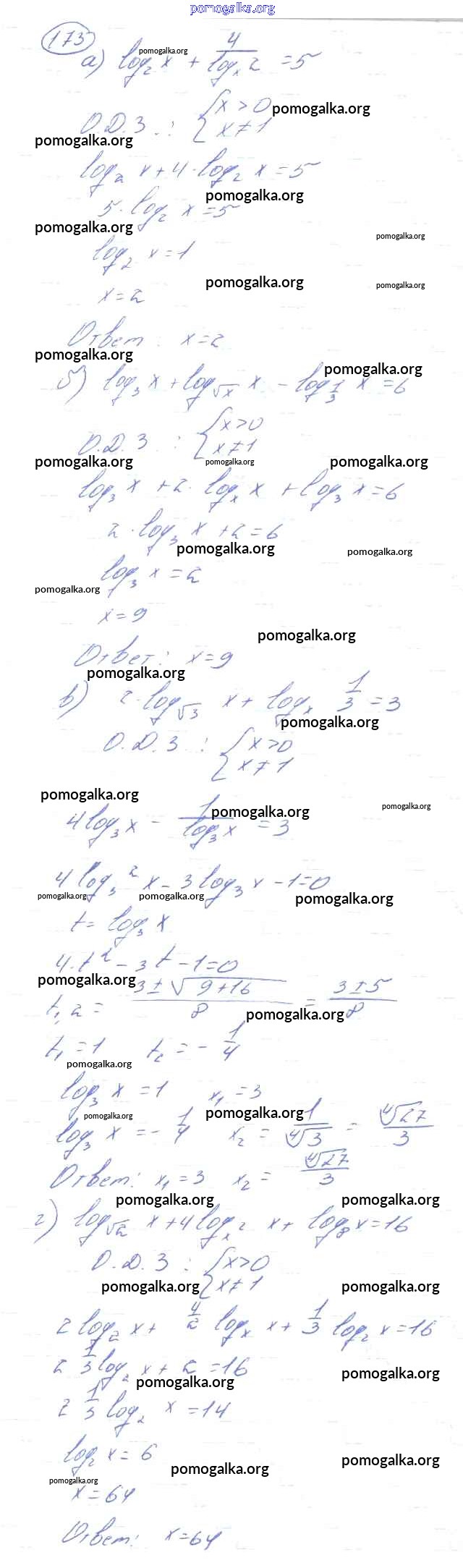 Готовые ответы - Алгебра и начала математического анализа 10-11 класс Колмогоров А.Н. - повторение 173
