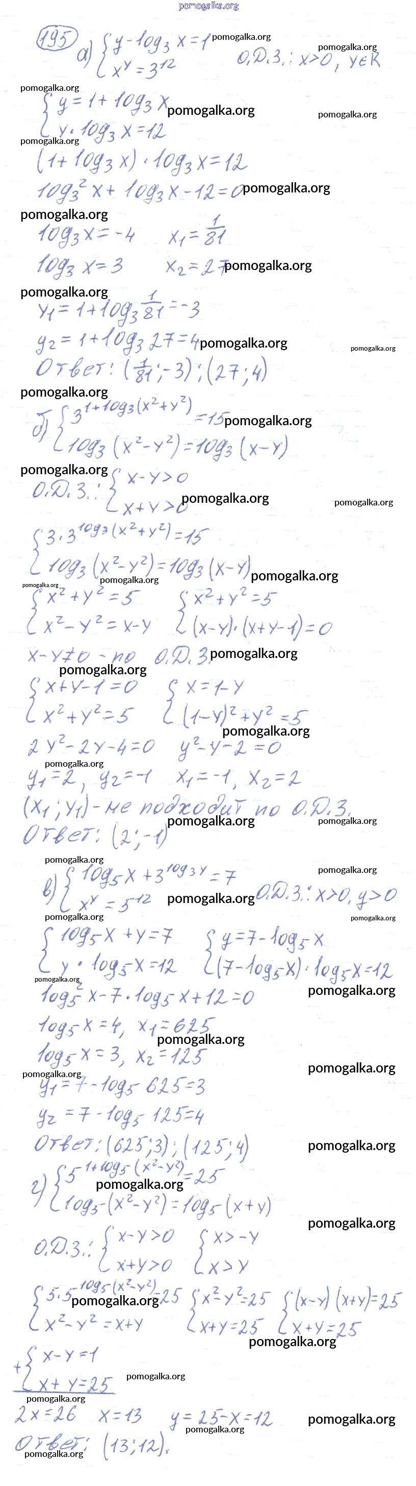 Готовые ответы - Алгебра и начала математического анализа 10-11 класс Колмогоров А.Н. - повторение 195