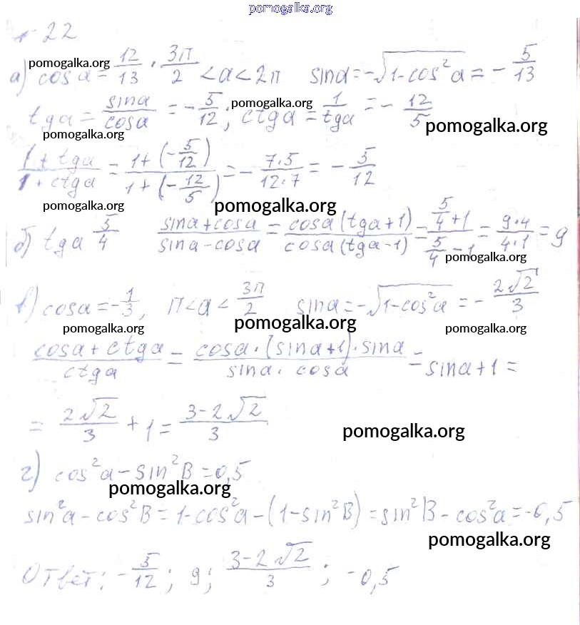 Готовые ответы - Алгебра и начала математического анализа 10-11 класс Колмогоров А.Н. - упражнение 22