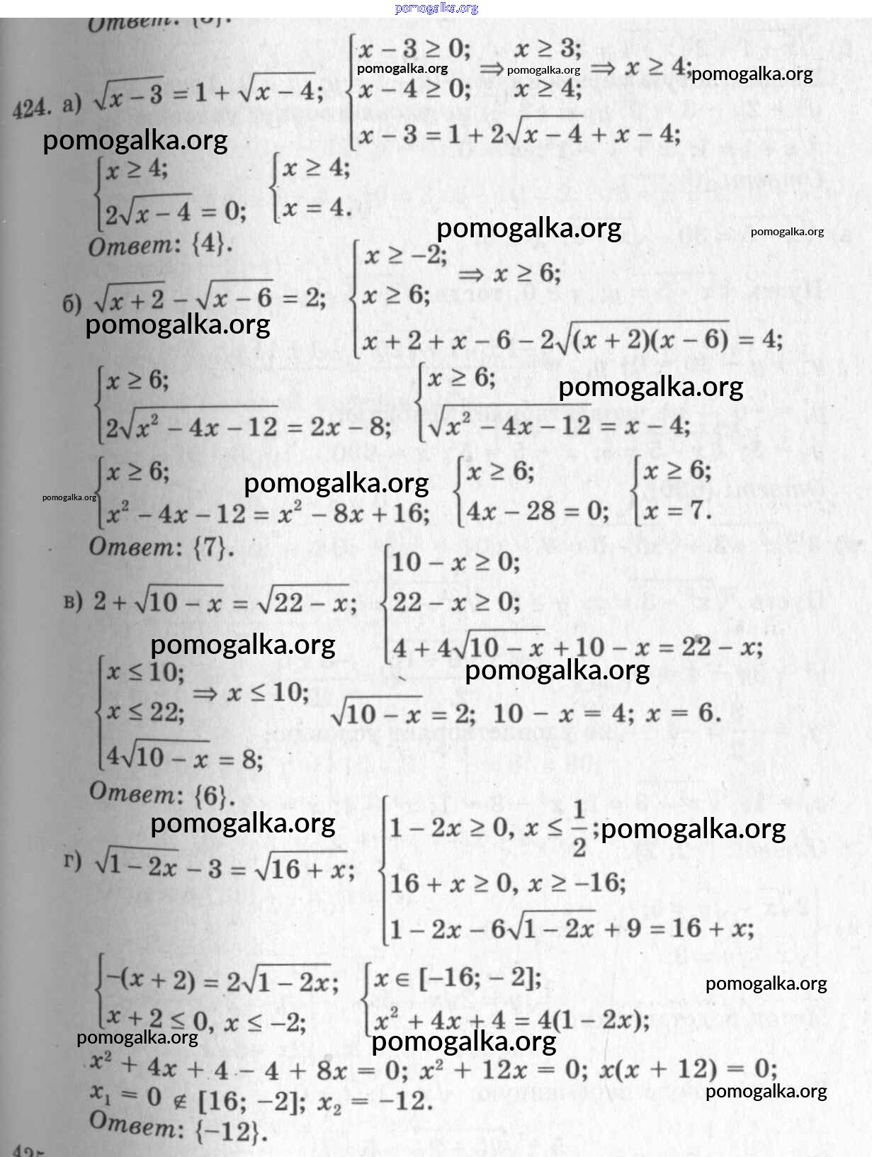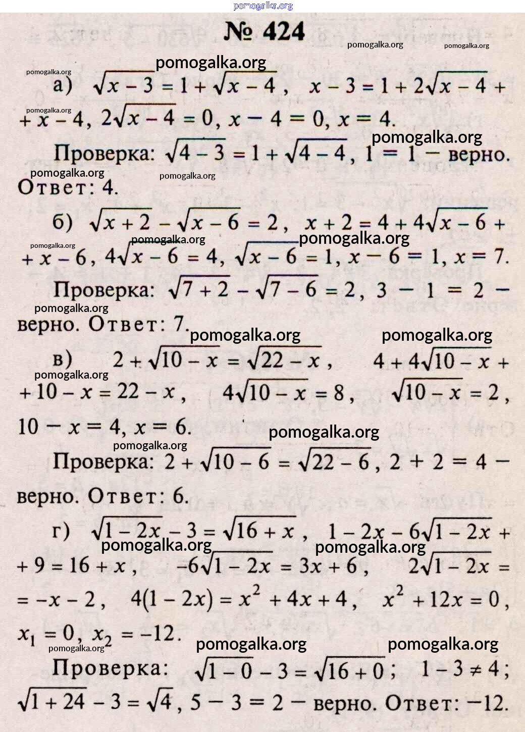 Готовые ответы - Алгебра и начала математического анализа 10-11 класс Колмогоров А.Н. - упражнение 424
