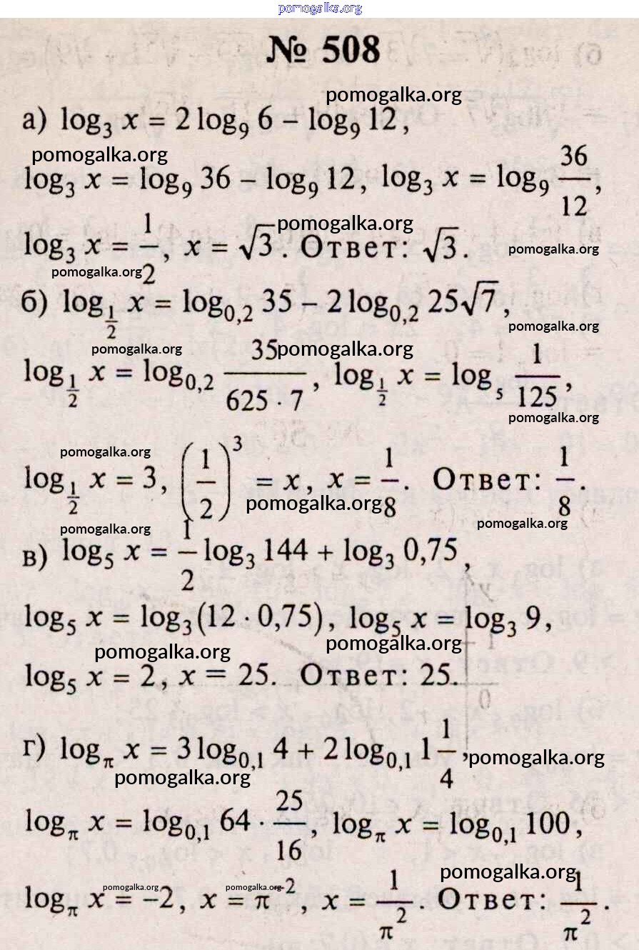 Готовые ответы - Алгебра и начала математического анализа 10-11 класс Колмогоров А.Н. - упражнение 508
